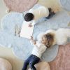 En drøm av et gulvteppe formet som en fluffy sky med påsydd pute. Perfekt på barnerommet eller i kosekroken. Teppet er håndlaget og små variasjoner i farge og fasong kan forekomme. Gulvteppene i denne kolleksjonen kan enkelt vaskes i vaskemaskinen hjemme, helt genialt i hjem med små barn, dyr og menn.