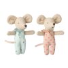 Klassisk Maileg sett med babymus tvillinger som sover trygt side om side i sovepose, lagt i en liten fyrstikkeske. Perfekt til lek og små historier. Passer til tilbehør i baby mus-størrelse.