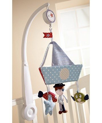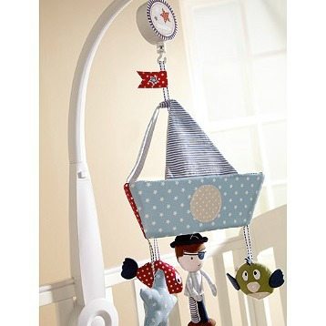 Søt musikkmobil som går rundt og spiller musikk. Kan festes på sprinkelsengen eller veggen, begge fester følger med.