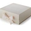 Nydelig gaveboks til de minste. Settet inneholder sparkedress med fot, med trykknapper og knyting, en liten lue og et babyteppe. Gaveboksen lukkes med sløyfebånd og er super til å oppbevare minner i senere.