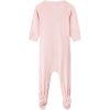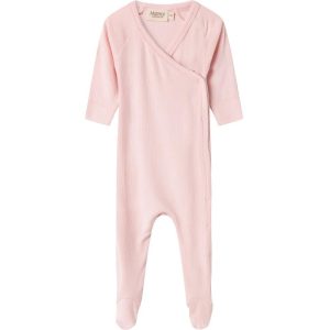 Langermet jumpsuit med føtter for nyfødte. Jumpsuiten har omslagsåpning og lukkes med trykknapper fra halsen og ned det ene benet. Den er laget i en utrolig myk og elastisk mikromodalkvalitet – perfekt for sart babyhud.