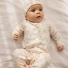 Gjør hverdagen mykere og mer sjarmerende med MarMar Rukana sparkedress i det delikate Little Bouquet-printet. Denne langermede sparkedressen er laget i et mykt og elastisk materiale som er behagelig mot huden og gir barnet full bevegelsesfrihet. Den praktiske åpningen med trykknapper fra hals til fot gjør den perfekt til raske bleieskift.
