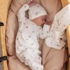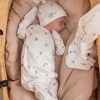 Langermet sparkedress til nyfødt, laget i myk jerseykvalitet med elastan som gir stretch og komfort. Sparkedressen har praktisk omslagslukking og lukkes med trykknapper fra halsen og ned langs det ene benet. Det søte Peace-printet gir et tidløst og harmonisk uttrykk.