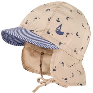 maximo baby solhatt med nakkebeskyttelse – beige seilbåt