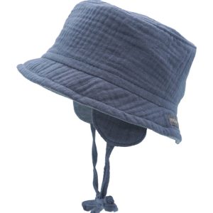 maximo muslin baby bøttehatt m/stretch i nakken – blå