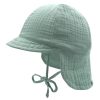 Myk solhatt i GOTS-sertifisert bomull. Solhatten har knyting og strikk bak.