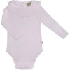 Jolly Rompe er en søt dress fra Memini i økologisk bomullsvelour. Dressen har søte rysjer på brystet, korte ben med bomullsrib nederst, i halsen og i armringning.