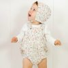 Neya romper er en skjønn drakt med korte ben. Den kommer i en hvit bunnfarge med blomstermønster i rosa/oransje farger.