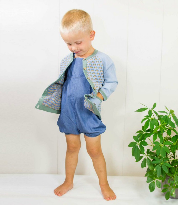 Supersøt romper i lin som passer gutter og jenter. Det er treknapper på selene for regulerbar lengde.