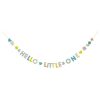 Dette er et helt herlig kort til babyshower. I kortet fra Meri Meri er det et stot girlander som det står Hello Little One på. Fargerike og sølvfolierte figurer er festet mellom ordene.
