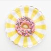 Nydelige servietter i hvite og gule striper med bølgekant. Det finnes matchende kopper og tallerkener.