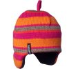 Una strikket lue fra MINI A TURE i rosa/sand. Luen er laget i nydelig merinoull med striper og heklet kant.