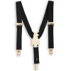 Svarte bukseseler i 100 % resirkulert polyester. Bukseselene har et pingvinmerke bak, gullfargede metallklemmer og justerbare spenner.