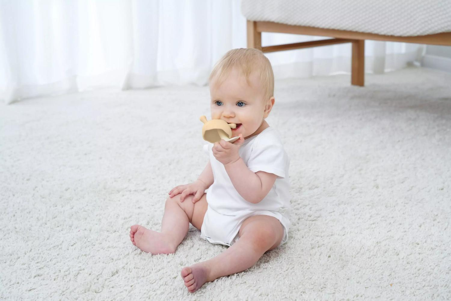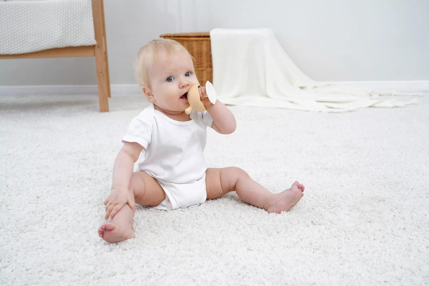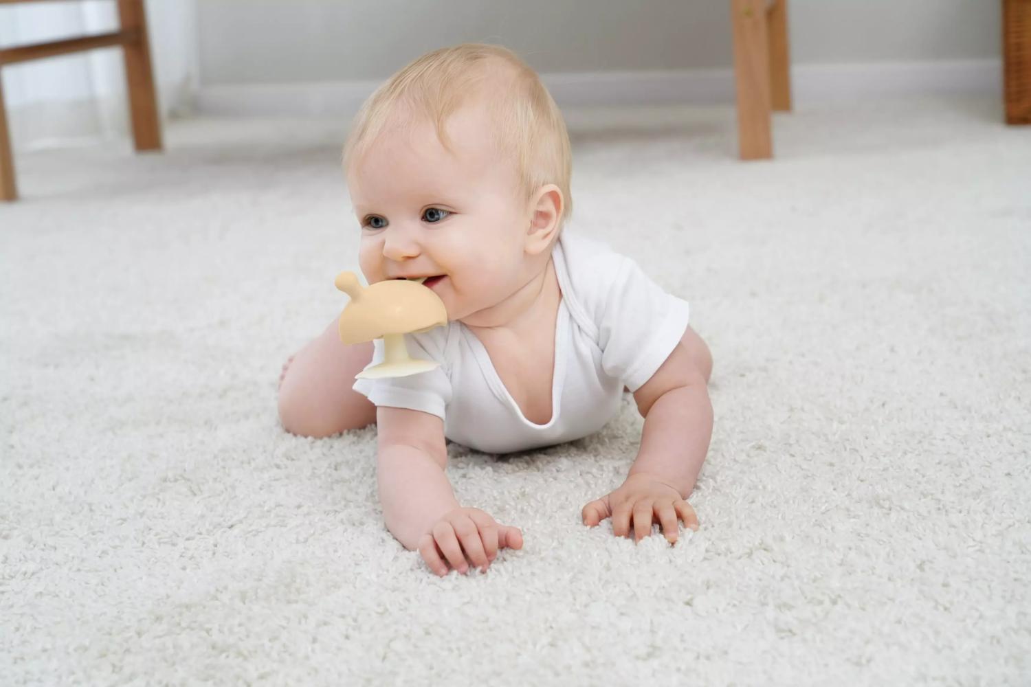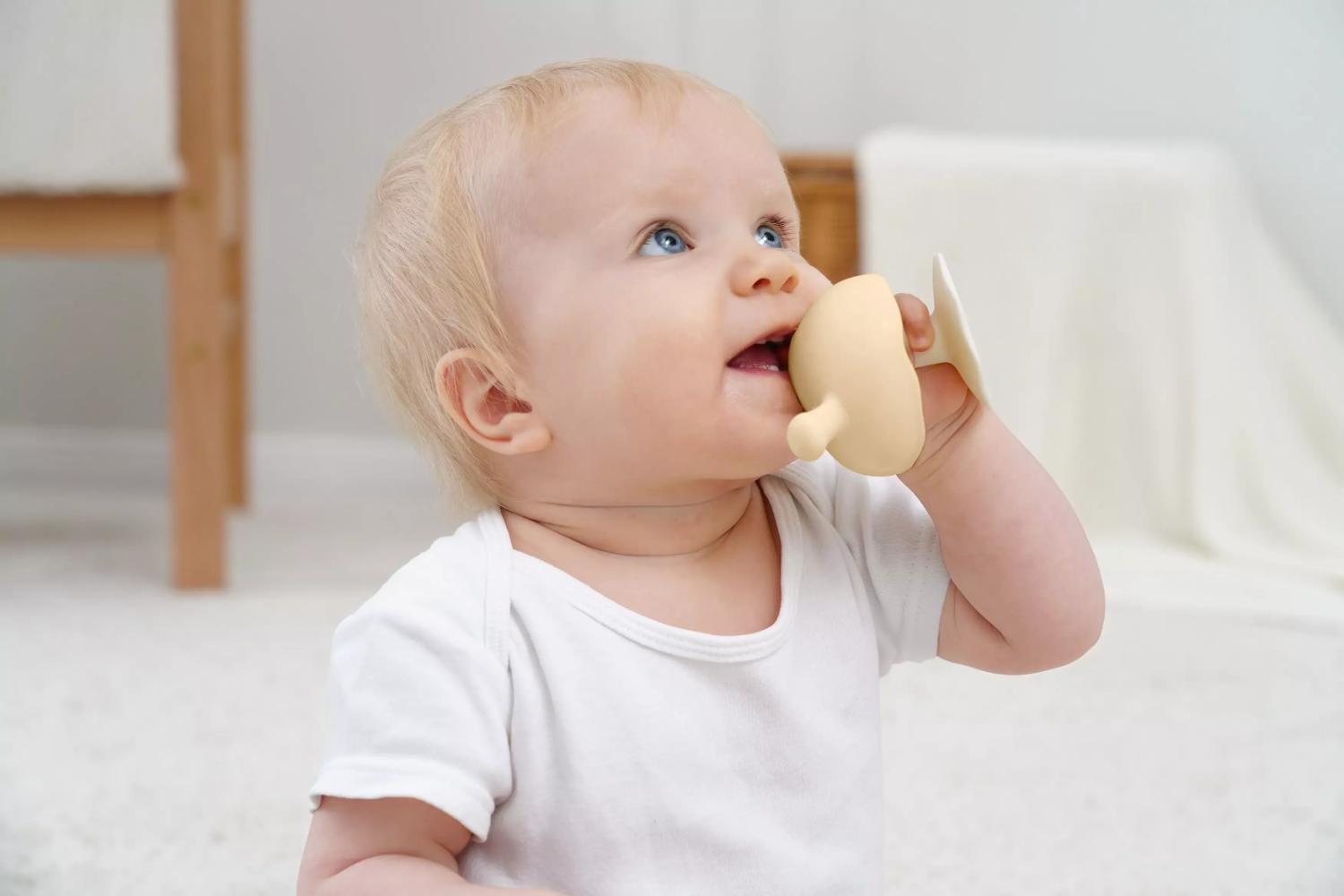 Mombella Mimi-sopp er en myk biteleke som kan gi ekstra trøst til urolige babyer – spesielt for de som ikke vil ta smokk. Den er laget for å være enkel å holde, også når barnet sovner, og kan bidra til å lindre ømme og kløende gommer.
