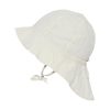Solhatt med nydelig blomsterbroderi. Myke bånd under haken som gjør at den holder seg godt på plass. Nakkebeskyttelsen beskytter nakken mot solen.