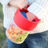 Munchie mug er en snackbeholder med et sølefritt lokk laget av to overlappende stoffstykker i stede for ubehagelig plast. Dette gjør at lokkets åpning er supermykt, elastisk og komfortabelt for alle barn, selv de som er vare for sensoriske stimuli. Stoffet trekker seg sammen igjen når det ikke er i bruk. Plastdelen er laget av sikker og resirkulerbar polypropylen #5, stoffet er laget av «Food-grade» polypropylen/spandex. Inkluderer skrulokk som kan brukes for å holde maten fersk lenger. Kun for tørre matvarer/snacks.