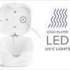 Kul designet bærbar smokkesterilisator som steriliserer smokker på kun 59 sekunder! Fjerner 99,99% av alle bakterier og nøytraliserer lukt. Prosessen foregår ved hjelp av UV lys, samme teknikk som brukes på sykehus. Lett å bære da den er på størrelse med en appelsin og er batteridreven. Kan også brukes med USB kabel (inkludert). Spesielt egnet under influensaepidemier og for premature babyer.