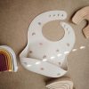 Supersøt smekke i silikon som er enkel å holde ren og lett å ta med i stellevesken. Smekken har lomme som samler opp alt som ikke kommer inn i munnen og regulerbar lukking bak
