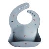 Supersøt smekke i silikon som er enkel å holde ren og lett å ta med i stellevesken. Smekken har lomme som samler opp alt som ikke kommer inn i munnen og regulerbar lukking bak