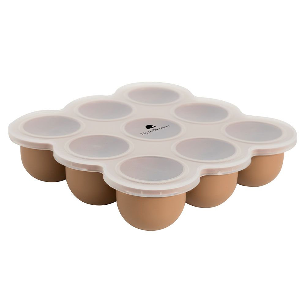 Superpraktisk fryse/steke form med lokk, til hjemmelaget babymat, smoothies, matmuffins, middager, desserter etc. Maten som fryses/stekes i formen, klemmes enkelt ut fra undersiden, med en egen «knap» funksjon.