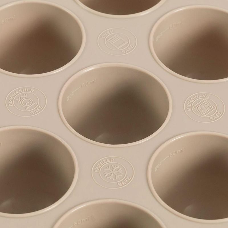 Denne allsidige fryse- og stekeformen i silikon er et praktisk verktøy for småbarnsforeldre som ønsker å lage hjemmelaget babymat, snacks og middagsretter – raskt, trygt og enkelt. Formen er laget i miljøvennlig silikon, og tåler både ekstreme minusgrader og høye temperaturer. Den fleksible «knapp»-funksjonen gjør det lett å trykke ut porsjoner, enten det er babymat, smoothies eller matmuffins.