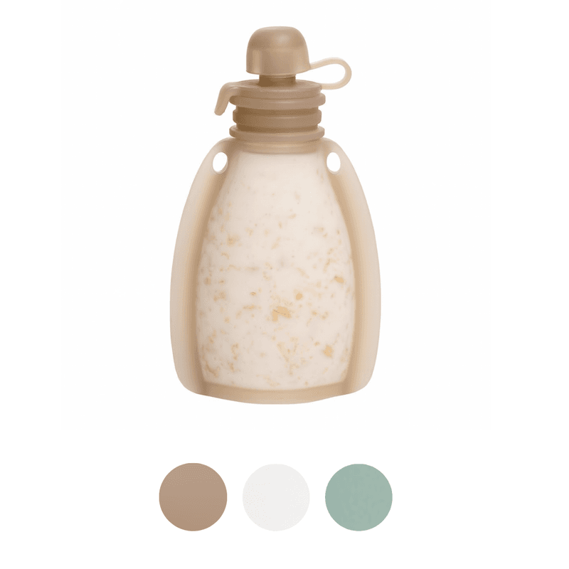 Endelig er den tilbake – SQUEEZE klemmepose i ny og forbedret modell, med nye farger og enda smartere funksjonalitet! Denne klemmeposen er laget i 100% miljøvennlig silikon og er designet for å vare – fra babyens første smaksprøver til skolealder. Den står stødig, har ingen skarpe kanter og kommer med et lekkasjesikkert lokk som enkelt skrus på – perfekt når barnet ikke drikker opp med en gang, eller posen skal ned i stellevesken.
