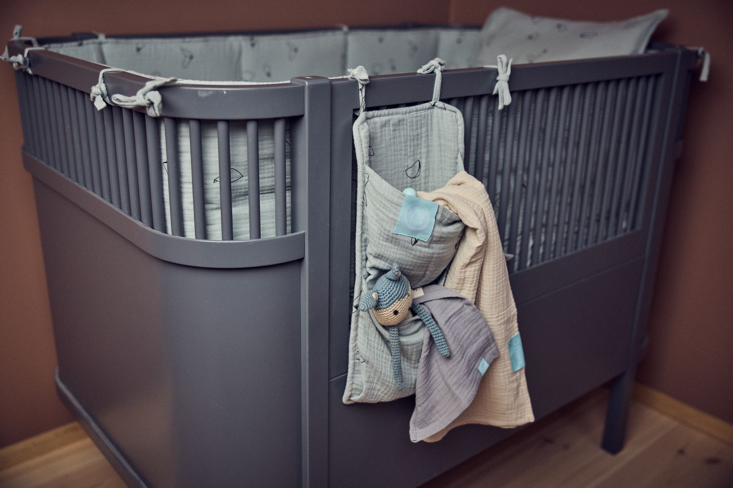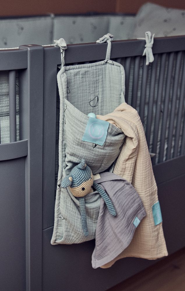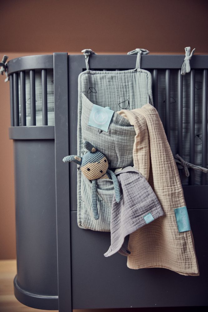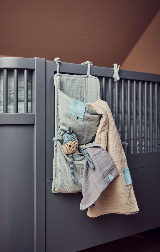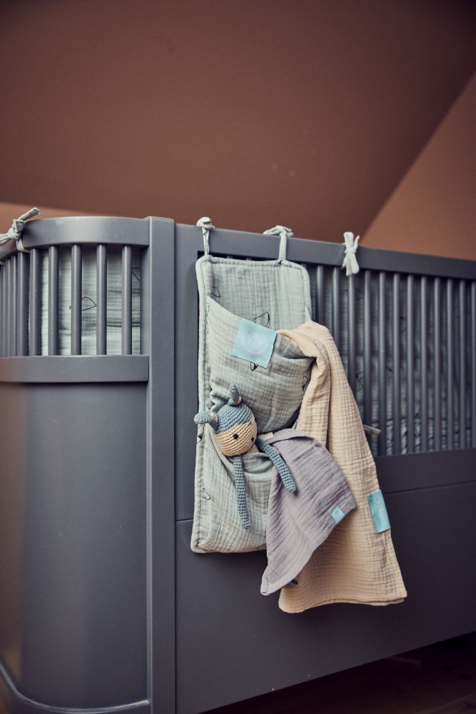 Søte og praktiske sengelommer fra Najell i mykt muslinstoff som kan henges på sengen, eller andre steder, for oppbevaring av alt fra en ekstra smokk, et kosedyr, en gulpeklut eller andre småting som er praktiske å ha for hånden. Justerbare snorer, passer den til enhver seng. Perfekt for nattskift og mating, ved å ha alt du trenger ventende i din Najell Sengelomme, kan du sove litt lettere når du vet at du er forberedt. Og at den lille vil sove igjen på kort tid.