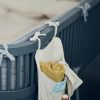 Søte og praktiske sengelommer fra Najell i mykt muslinstoff som kan henges på sengen, eller andre steder, for oppbevaring av alt fra en ekstra smokk, et kosedyr, en gulpeklut eller andre småting som er praktiske å ha for hånden. Justerbare snorer, passer den til enhver seng. Perfekt for nattskift og mating, ved å ha alt du trenger ventende i din Najell Sengelomme, kan du sove litt lettere når du vet at du er forberedt. Og at den lille vil sove igjen på kort tid.
