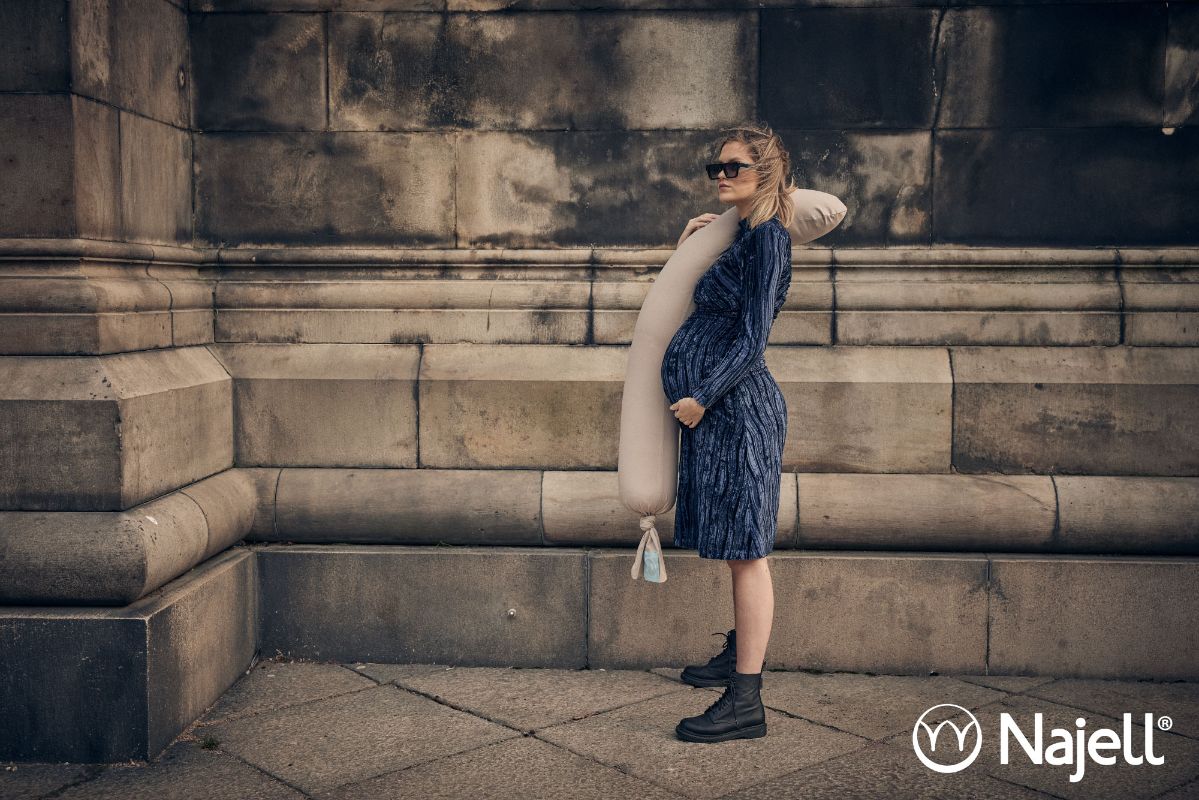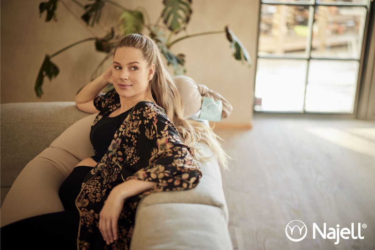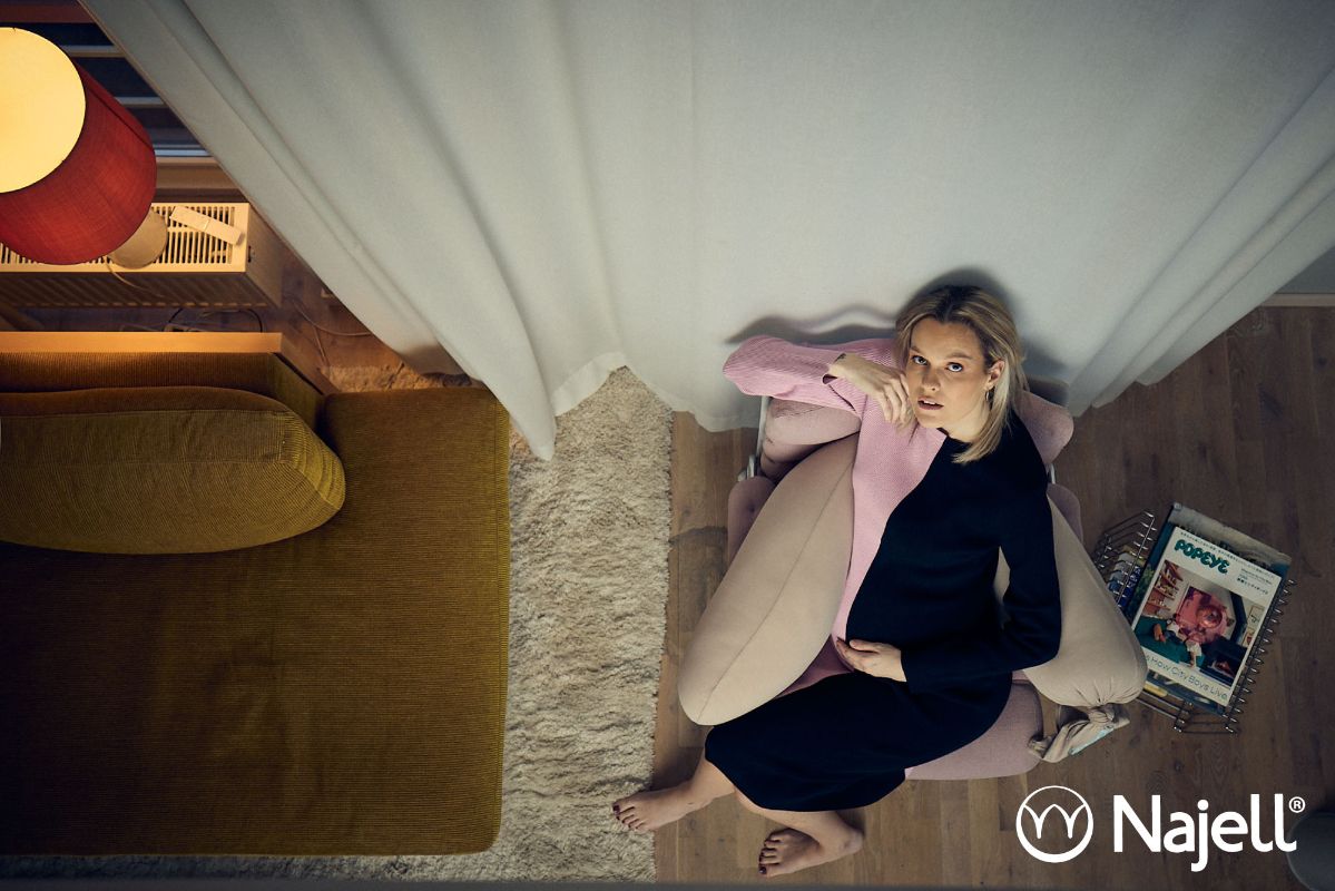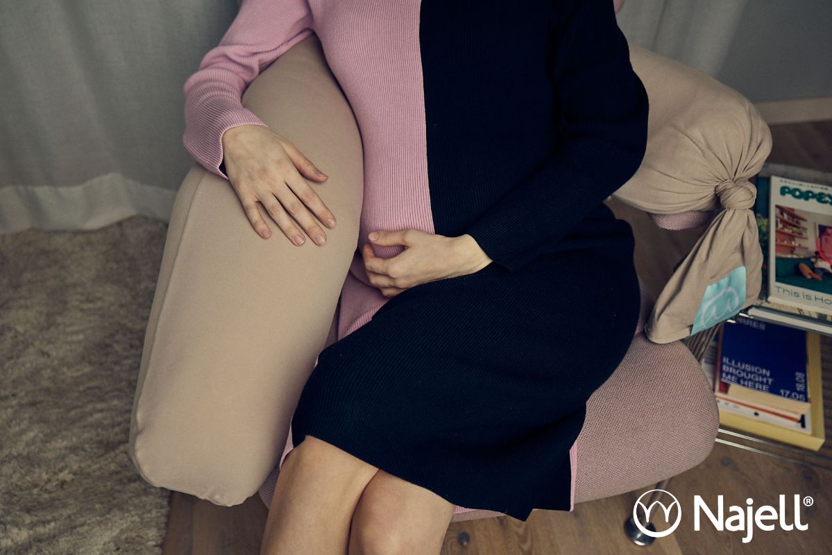 Den beste støtten under graviditeten: Det anbefales for gravide å sove på siden, både av hensyn til komfort og sikkerhet. Najells graviditetspute hjelper deg med å holde ryggraden på linje ved å støtte kroppen. Den er designet for å tilpasse seg konturene til den gravide kroppen din, og avlaste bena og ryggen. Resultatet er lindret kroppssmerter, mindre smerter og bedre søvn. Dessuten er det veldig koselig å krølle seg sammen med på sofaen når du skal se favorittprogrammet ditt på Netflix.