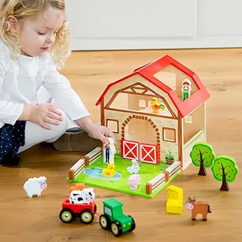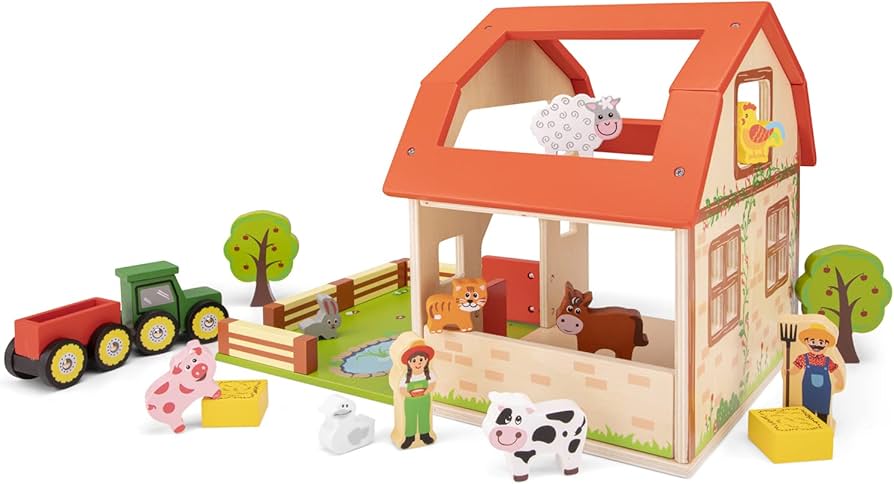 Denne bondegården i tre er et supert valg for barn som elsker dyr, kjøretøy og gårdsliv. Med mange figurer kan barnet lage egne historier, flytte dyrene rundt, leke inne og ute på gården – og utvikle fantasi og språk på en naturlig måte. 😊