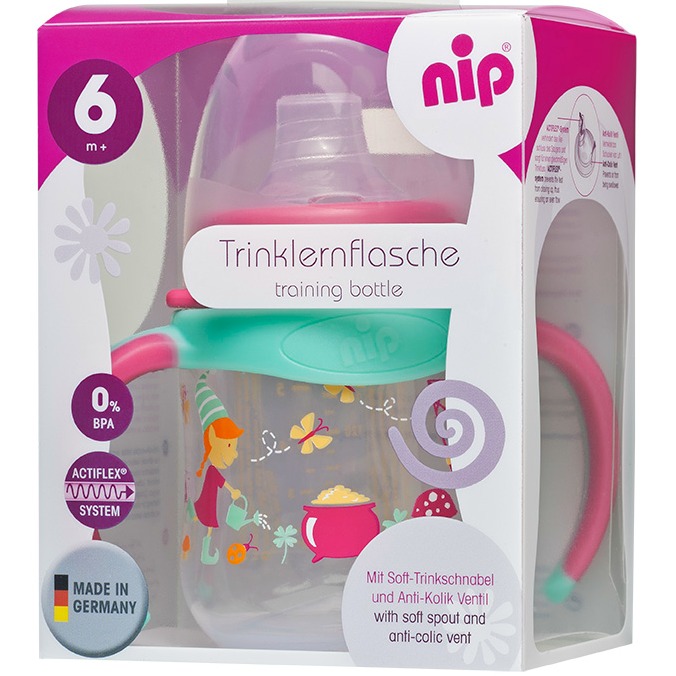 Fin tutekopp med håndtak og dryppsikker tut. Myk tut som er skånsom mot tennene.