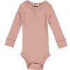 Lekker langermet basic body i bomull med søtt hullmønster. Krysspåpning ved skuldrene og praktisk trykk-knapplukking mellem bena. 100% bomull.