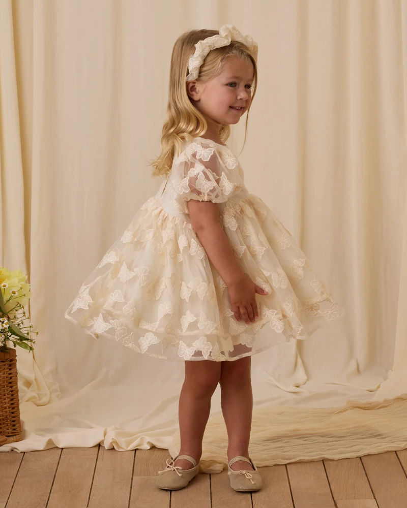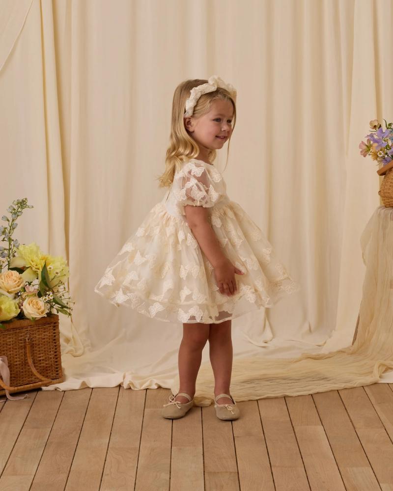 Kjolen er laget i et unikt sommerfuglbroderte tyll i den nøytrale nyansen Natural. Et nydelig og fantasifullt design som virkelig lar barnets stil blomstre.