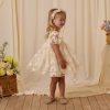 Vår vakre Luna kjole har en babydoll-inspirert fasong med søte puffermer og en buet midje som gir et lett og luftig uttrykk. Perfekt for små prinsesser til både fest og hverdagslige eventyr.
