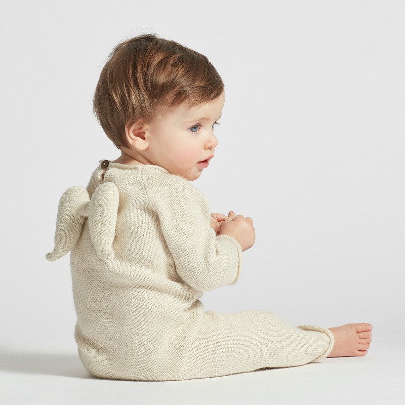 Denne nydelige sparkedressen i 100% babyalpakka har skjønne myke englevinger:)