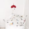 En søt sopp med spilledåse og polyester padding. Tre-ring i båndet man trekker i, broderte øyne og munn.