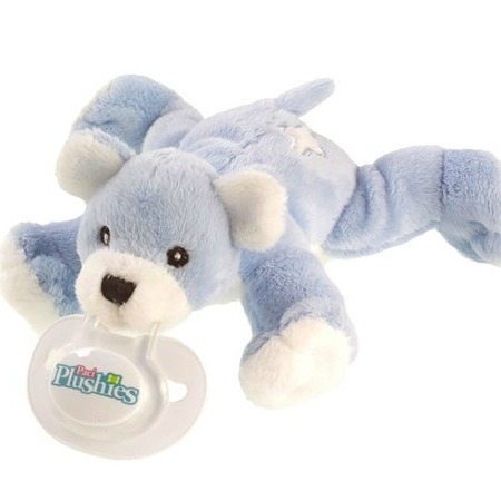 Paci-Plushies er smokken som henger fast i bamsen! Paci-Plushies passer til nesten alle smokker som finnes på markedet, også de med ring. Smokken festes i silikonringen som sitter fast på bamsen. Smokkeholderen kan vaskes i oppvaskmaskin og bamsen kan vaskes i vaskemaskin. Smokken kan ikke gå i sterilisator.