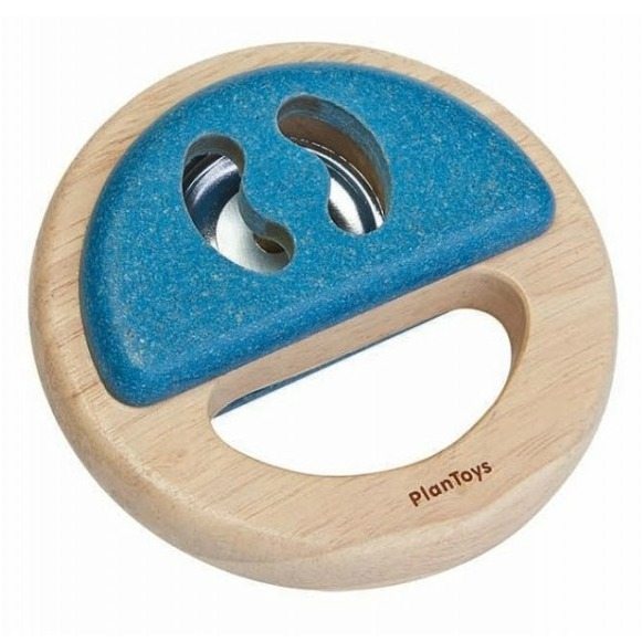 Barnets første tamburin fra danske Plantoys, laget i gummitre og farget med økologisk fruktfarge.