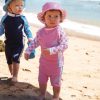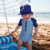 Fineste og søteste bøttehatten for de aller minste barna som leker i solen. Bred brem som beskytter hele veien rundt, perfekt for strand, vann og ellers i solen. Lett og myk elastikk, fleksibel. Tørker raskt.