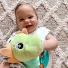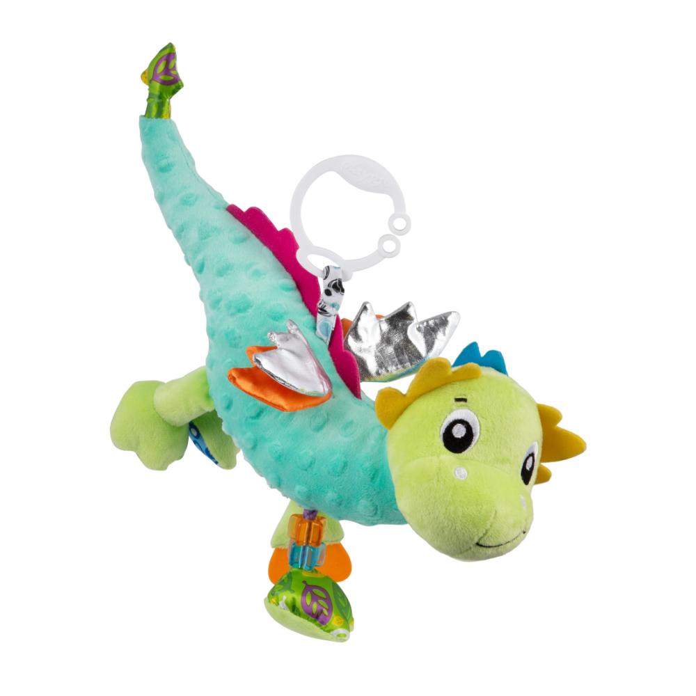 Dusty Dragon er en spennende og fargerik sanseleke utviklet for å stimulere barnets sanser fra fødselen av. Med ulike teksturer, en myk bitedel, prassellyder og morsomme detaljer, inviterer denne søte dragen til lek og utforskning – perfekt til vogn, bilstol eller leketid hjemme.