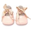 Pom Pom myke og nydelige små skinntøfler/skinnsko har, fast helkappe og sklisikker gummisåle. Gir god støtte til små barneføtter, brukes både hjemme og til fint. Bør være 1-1,5 cm lengre enn foten når de tas i bruk.