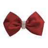 - Materialer: Grosgrain-bånd, metallklype med antiskli, Swarovski-rhinestone og perleknapp
