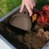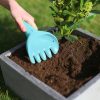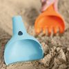 Rake og spade fra Quut. Kan brukes i hagen, på stranden, i sandkassa og i snø. Raki kan også brukes som trakt, sil, og til å skrive i sand og snø.