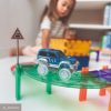 Put an AA battery in the car and it start driving. The Cleverclixx car fits perfectly on your Race Track. The front lights also illuminate when it starts moving. You can’t use this car on other race tracks. |