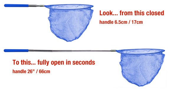 Fargerik håv som er kun 17 cm lang når den er slått sammen og 66 cm når den er dratt helt ut!