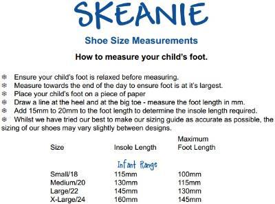 Wow! Sier de fleste som får prøve et par ekte SKEANIE. Fantastisk kvalitet, gjennomtenkt design og behagelige for barnet. SKEANIES er designet for å beskytte barnets føtter hjemme eller i barnehage, og andre steder. Håndlagd i økologisk skinn og med fleksibel semsket såle. Sålen gir god antiskli. Elastisk åpning holder skoen på plass rundt barnets ankel, de er enkle å ta av og på. Alle SKEANIES er designet i Australia og produsert Fair Trade.