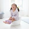 Med Skip Hops MADE FOR ME potte får barnet sitt helt eget mini-toalett som gjør pottetreningen og bleieavvenningen enklere. På potten er det en «spyleknapp» med en realistisk spylelyd som gjør pottebesøket morsomt og motiverende. På baksiden finnes det en lomme for det medfølgende våtserviettetuiet. Lommen kan også brukes til andre ting som f.eks. bøker. Potten har en glatt overflate og en uttagbar «innerpotte» som er hygienisk og enkel å vaske.