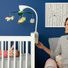 Skip Hops sengemobil moonlight & melodies har et mykt lys og prosjekterer stjerner i taket. Spiller 4 vuggesanger og 4 naturlyder. Velg den kombinasjonen av lyd og lys som passer akkurat ditt barn. Den tilhørende fjernkontrollen gjør at du enkelt kan starte og stoppe mobilen også utenfor barnets rom.
