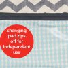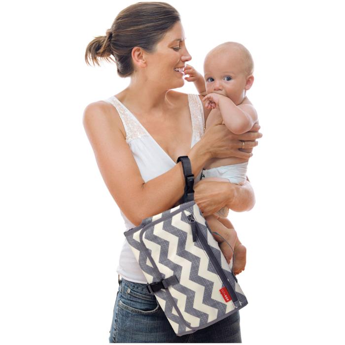 Pronto fra Skip Hop kommer med ekstra bred stellemadrass som lett kan tørkes av. Hodedelen er vattert med en innovativ Pronto-pute. Stellemadrassen kan også fjernes helt, med glidelås.