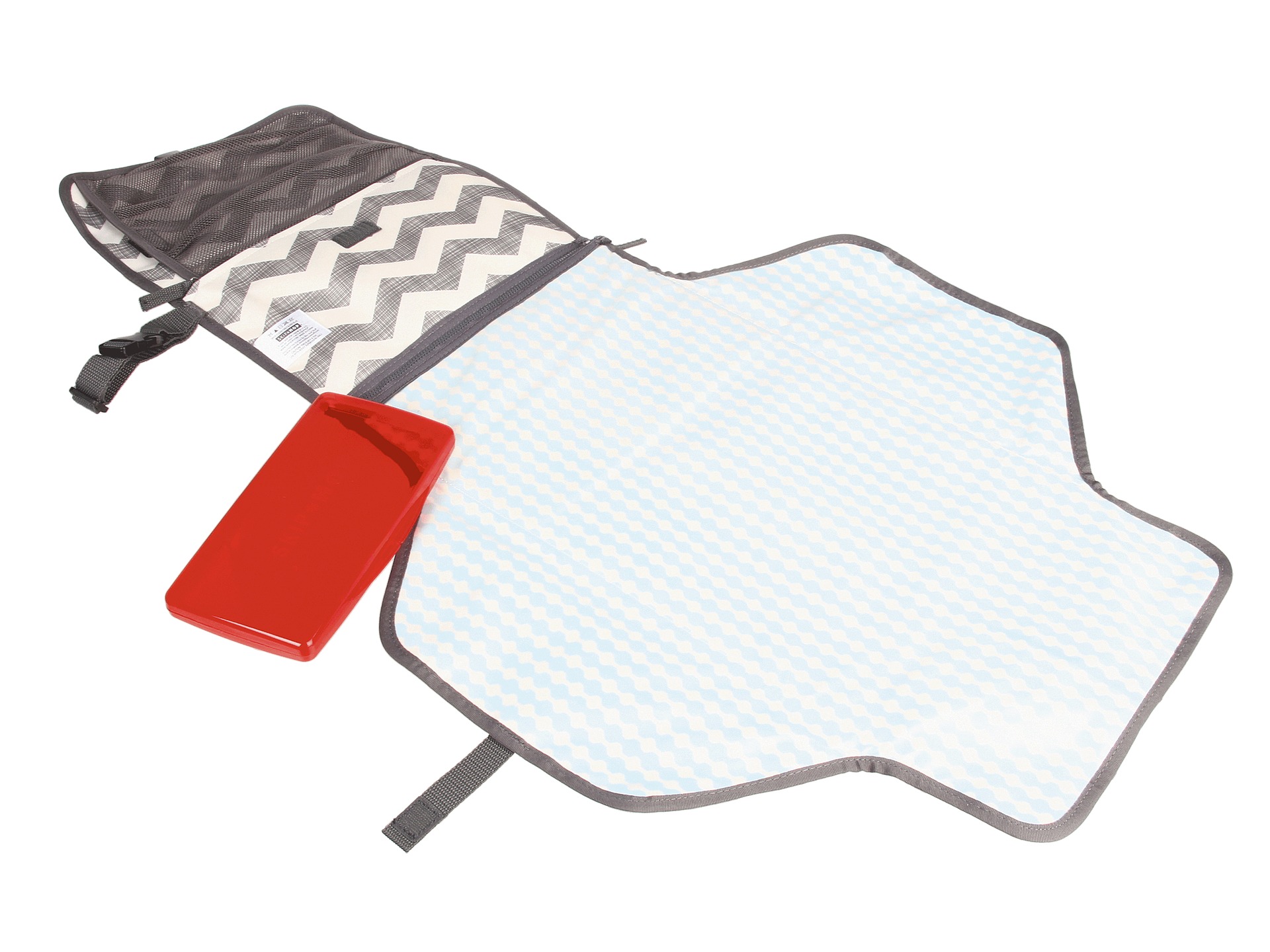 Pronto har også en lekker plastikk-eske for vaskeservietter, nettlommer for bleier mm. og en glidelås-lomme på utsiden for personlige saker.